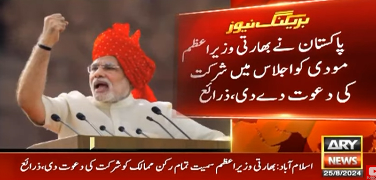 اے آر وائی نیوز کو ذرائع سے ملنے والی اطلاعات کے مطابق پاکستان میں 15 اور 16 اکتوبر کو ہونے والے شنگھائی تعاون تنظیم اجلاس میں شرکت کے لیے حکومت پاکستان نے پڑوسی ملک بھارت کے وزیراعظم نریندر مودی کو اس میں شرکت کی دعوت دی ہے۔