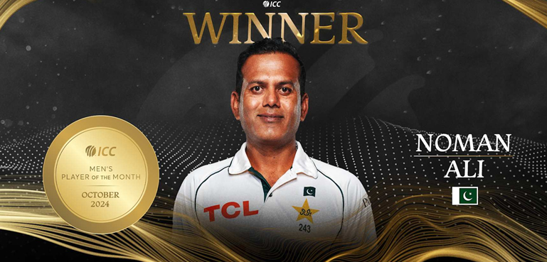 انگلینڈ کے خلاف نا قابل فراموش فتح گر کاکردگی کا صلہ مل گیا آئی سی سی نے پاکستانی اسپنر نعمان علی پلیئر آف دی منتتھ اکتوبر قرار دیا ہے۔