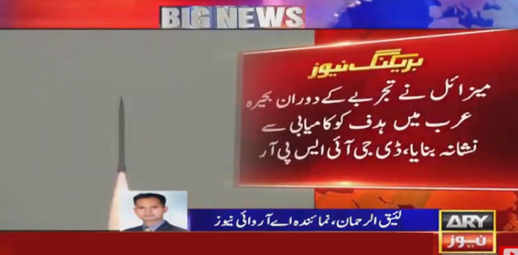 آئی ایس پی آر کا کہنا ہے کہ تجربے میں ویپن سسٹم کے ٹیکنیکل پیرامیٹرز کو جانچا گیا، میزائل نے تجربے کے دوران بحیرہ عرب میں ہدف کو کامیابی سے نشانہ بنایا۔
