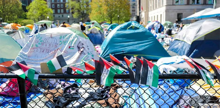 امریکی یونیورسٹی میں فلسطینیوں سے اظہاریکجہتی کیلئے احتجاج کیا گیا ہے۔ پولیس نے نارتھ ایسٹرن یونیورسٹی میں فلسطینیوں کے حامی کیمپ کو خالی کرالیا ہے۔