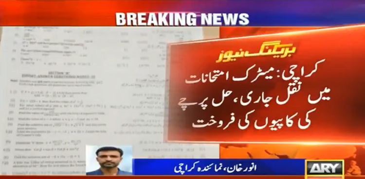 کراچی : میٹرک کے امتحانات میں پیپر آؤٹ ہونا اور نقل معمول بن گیا، آج بھی دسویں جماعت کا ریاضی اور نویں جماعت کا کیمسٹری کا پرچہ مقررہ وقت سے قبل ہی آوُٹ ہوگیا۔