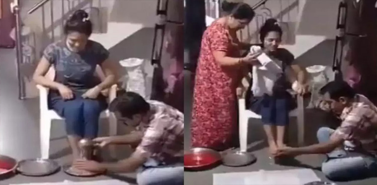 والدین نے بیٹی کے پاؤں دھوکر کیوں پیے؟ ویڈیو وائرل