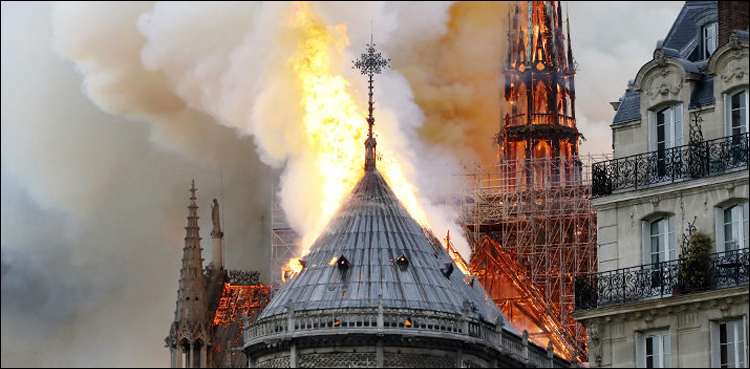 نوٹرے ڈیم وہ تاریخی چرچ ہے جہاں ہر سال دنیا بھر سے لاکھوں سیاحوں کی آمد ہوتی ہے، واضح رہے کہ چرچ کی عمارت میں تعمیراتی کام جاری تھا۔