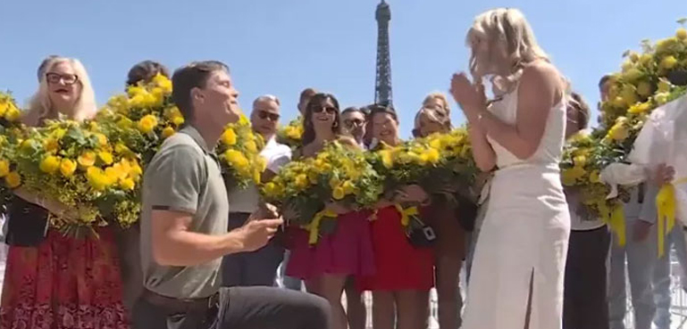 امریکی راؤر نے 5 جولائی کو ایفیل ٹاور کے سامنے اپنی گرل فرینڈ لینے اولیویا ڈونکین کو گھٹنوں کے بل بیٹھ کر پروپوز کیا اور اس پروپوزل کو مزید دلچسپ اور رومانوی بناتے ہوئے 2 ہزار 700 سے زائد زرد گلابوں کا اہتمام کیا۔