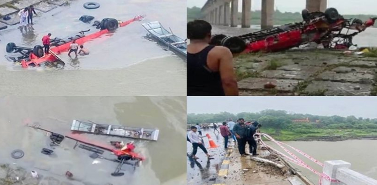 بھارتی میڈیا رپورٹ کے مطابق واقعہ دھار ضلع کے علاقے کھلگھاٹ میں اس وقت پیش آیا جب اندور سے مہاراشٹر جانے والی بس توازن بگڑنے کی وجہ سے حفاظی جنگلہ توڑتے ہوئے پچیس فٹ نیچے نرمدا ندی میں جا گری۔