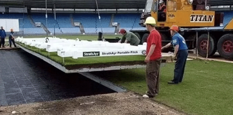 جب یہ پچ میچ کے مطابق تیار ہوجاتی ہے تو انہیں مشین (کرین) کی مدد سے لوہے کے سانچے سمیت گراؤنڈ میں لایا جاتا ہے اور پچ کی جگہ منتقل کیا جاتا ہے۔