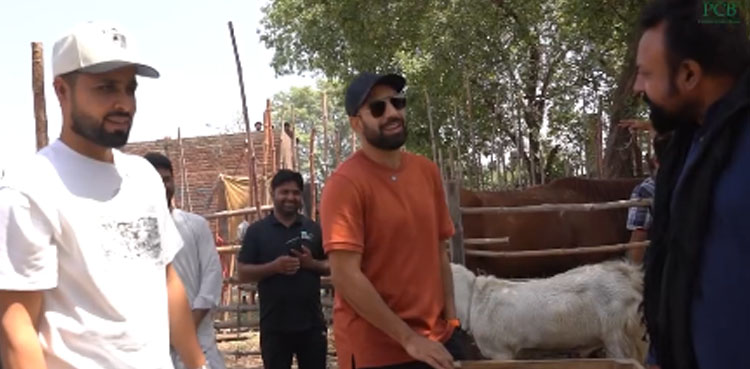 قومی کرکٹر حارث رؤف اور فہیم اشرف قربانی کے لیے بکرا خریدنے کے لیے مویشی منڈی پہنچ گئے۔