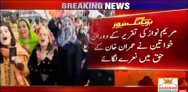 تفصیلات کے مطابق مظفر آباد آزاد کشمیر میں یوم یک جہتی کشمیر کے سلسلے میں پی ڈی ایم کے جلسے میں خواتین نے عمران خان زندہ باد کے نعرے لگائے۔