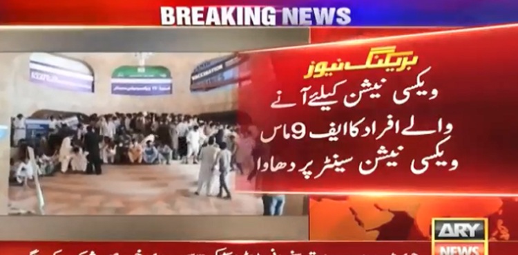 تفصیلات کے مطابق ویکسی نیشن کیلئے آنے والے افراد نے ایف 9ماس ویکسی نیشن سینٹر پر دھاوا بول دیا اور ہنگامہ آرائی سے املاک کو نقصان پہنچایا، جس کے باعث ایف 9ماس ویکسی نیشن سینٹر میں ویکسی نیشن کا عمل صبح سےمعطل ہے۔
