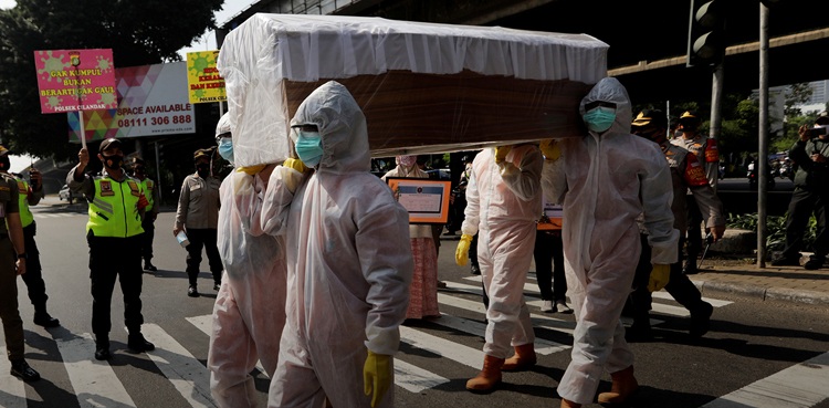 Indonesian officials parade dummy coffin through busy Jakarta traffic to warn people about the deadliness and spread of COVID-19 pic.twitter.com/sYgKo7BKVO