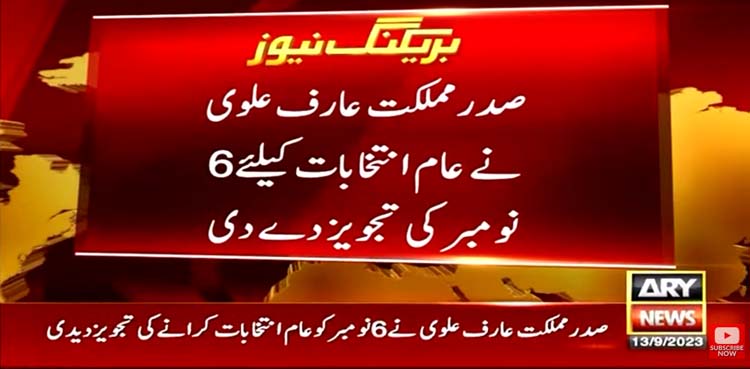 اسلام آباد: صدر مملکت ڈاکٹر عارف علوی نے 6 نومبر کو عام انتخابات کروانے کی تجویز دے دی۔