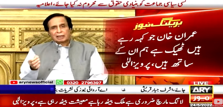 اسپیکر پنجاب اسمبلی اور مسلم لیگ ق کے مرکزی رہنما چوہدری پرویز الہٰی نے کہا ہے کہ عمران خان جو کہہ رہے ہیں وہ ٹھیک ہے اور ہم ان کے ساتھ ہیں۔