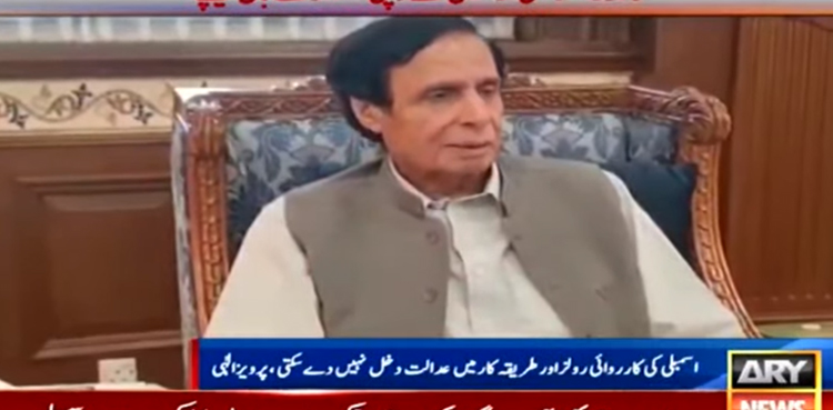 تفصیلات کے مطابق وزیراعلیٰ پنجاب کے امیدوار چوہدری پرویزالٰہی نے غیرملکی میڈیا سے گفتگو کرتے ہوئے کہا آرٹیکل 69بڑا واضح ہےعدالت اسمبلی کاررروائی میں مداخلت نہیں کر سکتی ، اسمبلی کی کارروائی رولزاورطریقہ کار میں عدالت دخل نہیں دے سکتی۔