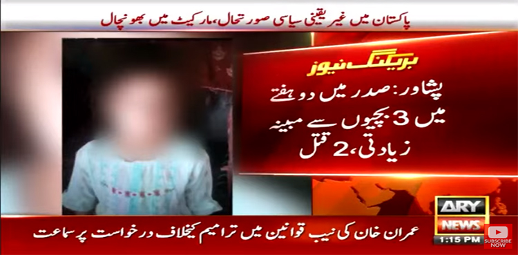 تفصیلات کے مطابق پشاور کے علاقے صدر میں دو ہفتے کے دوران تین بچیوں سے زیادتی کے واقعات رپورٹ ہوئے، دلخراش پہلو یہ ہے کہ نامعلوم جنسی درندوں نے ان میں سے دو بچیوں کو اپنی جنسی خواہش کا نشانے بنانے کے بعد قتل کردیا۔