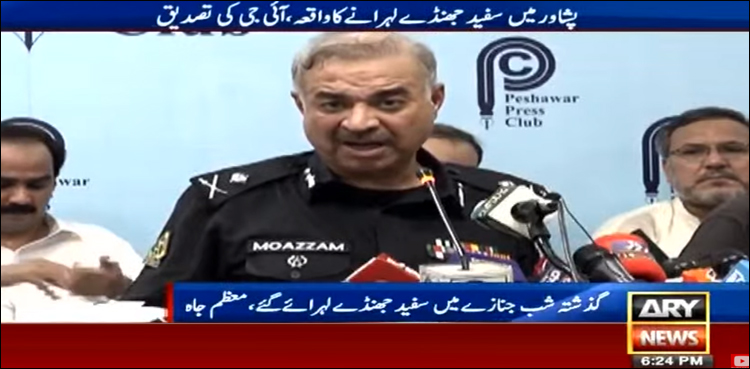 آئی جی خیبرپختون خوا معظم جاہ نے میڈیا سے گفتگو کرتے ہوئے پشاور میں گزشتہ رات نماز جنازے کے دوران سفید جھنڈے لہرانے اور نعروں کی تصدیق کی۔