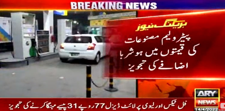 اے آر وائی نیوز کے مطابق 16 اپریل سے پیٹرولیم مصنوعات کی قیمتوں میں ردوبدل کی تجویز دی گئی ہے، اوگرا نے قیمتوں میں اضافے کی تجویز پیٹرولیم ڈویژن کو ارسال کردی۔