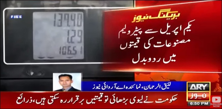 ذرائع کے مطابق حکومت نے لیوی بڑھائی تو ماہ اپریل میں پیٹرولیم مصنوعات کی قیمتیں برقرار رہ سکتی ہیں۔