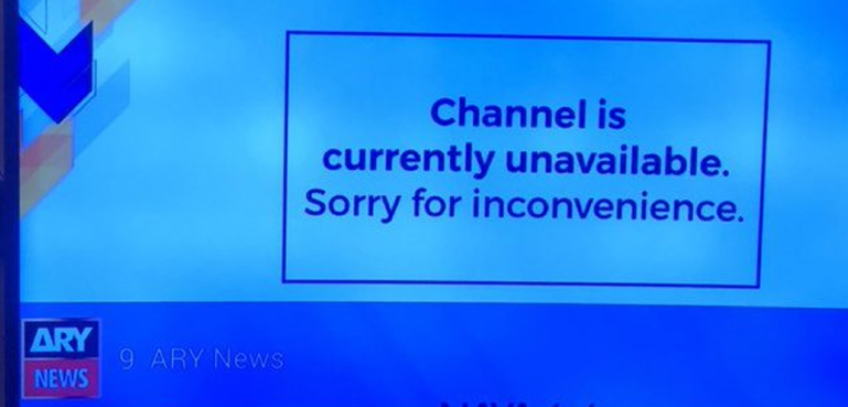 واضح رہے کہ پیمرا نے کیبل آپریٹرز کو اے آر وائی کی نشریات بند کرنے کے احکامات جاری کیے ہیں، جس کے بعد اسلام آباد، لاہور، کراچی، راولپنڈی سمیت کئی شہروں میں نشریات بند ہونا شروع ہوگئی ہیں۔