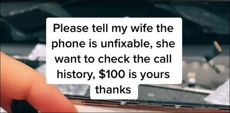 موبائل فون انجینئر نے جوڑے سے ایک گھنٹے کا وقت مانگا اور موبائل ٹھیک کرنے کےلیے کھولا تو حیران رہ گیا جس میں 100 ڈالر کا نوٹ اور ایک خط موجود تھا۔