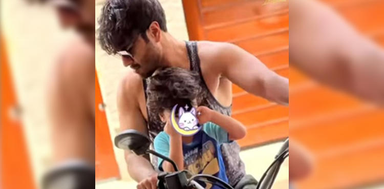 تصاویر میں فیروز خان اپنے بیٹے کے ہمراہ بائیک چلاتے ہوئے نظر آرہے ہیں، جبکہ ان کا بیٹا خوشگوار موڈ میں دکھائی دے رہا ہے۔