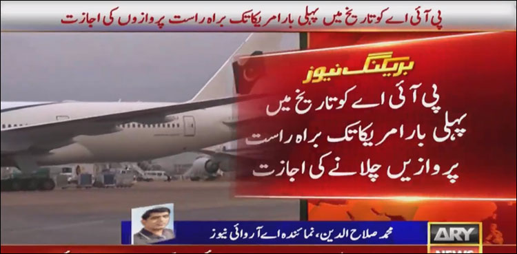 اسلام آباد : قومی ایئرلائن پی آئی اے کو تاریخ میں پہلی بارامریکاتک براہ راست پروازیں چلانے کی اجازت مل گئی ، جس کے تحت پی آئی اے ایک ماہ کے دوران ایک درجن پروازیں چلا سکتی ہے۔