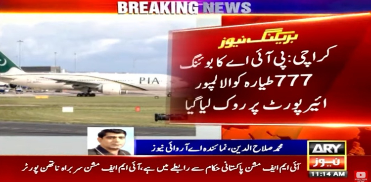یاد رہے کہ پی آئی اے کی جانب سے کچھ عرصہ قبل ملائیشین کمپبی سے لیز پر ایک طیارہ حاصل کیا گیا تھا، لیز رقم کی عدم ادائیگی پر متعلقہ کمپنی نے واجبات وصولی کے لئے مقامی عدالت حکمنامہ حاصل کیا تھا۔