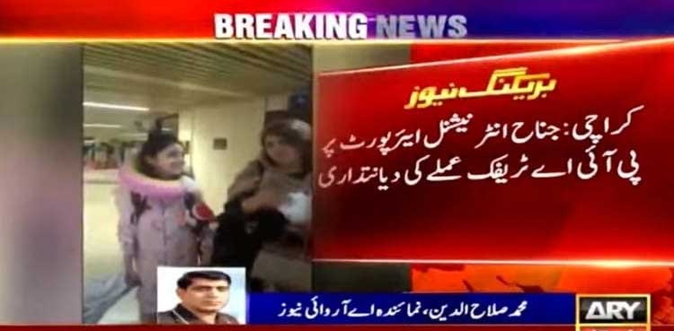 خاتون غیر ملکی ایئرلائن کی پرواز کے ذریعے لندن سے کراچی پہنچی تھیں اور پی آئی اے کی پرواز کے ذریعے پشاور جارہی تھی۔