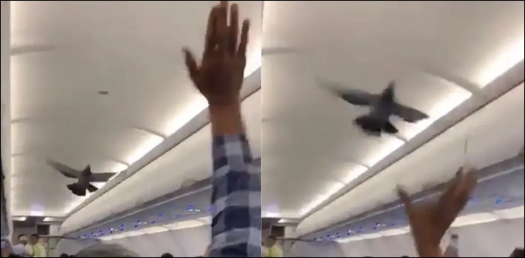 ویڈیو میں دیکھا جاسکتا ہے کہ کبوتر جہاز میں ادھر سے ادھر اڑ رہا ہے جبکہ مسافروں کی جانب سے واقعے کی ویڈیو بنائی جارہی ہے اور عملہ کبوتروں کو نکالنے میں مصروف ہے۔