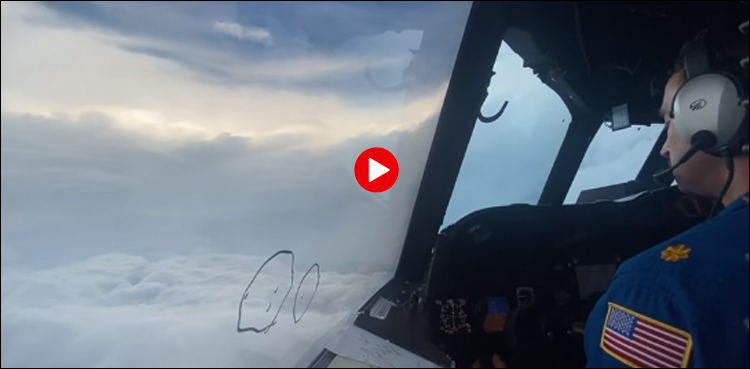نیشنل ہریکین سینٹر نے اپنے سوشل میڈیا اکاؤنٹس پر ایک ویڈیو شیئر کی اور لکھا کہ ’دوران پرواز پائلٹوں کی جانب سے لی گئی حیرت انگیز ویڈیو دیکھیں۔