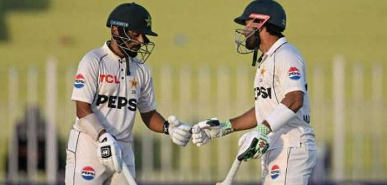 آج صبح پاکستان نے 4 وکٹوں پر 158 رنز سے پہلی اننگ کا دوبارہ آغاز کیا۔ سعود شکیل اور محمد رضوان نے ذمے داری کا مظاہرہ کرتے ہوئے اپنی اپنی سنچریاں مکمل کیں۔ چائے کے وقفے سے کچھ لمحے قبل سعود شکیل اسٹمپ آؤٹ ہوگئے، انہوں نے 141 رنز کی شاندار اننگ کھیلی۔ دونوں بلے بازوں کے درمیان پانچویں وکٹ کے لیے 240 رنز کی شراکت قائم ہوئی۔
