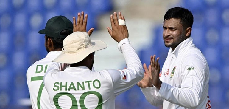 صرف آخری روز ہی نہیں بلکہ میچ میں مجموعی طور پر بنگلہ دیشی اسپنرز نے 9 وکٹیں حاصل کیں۔ پاکستان کی پہلی اننگ میں سعود شکیل اور آغا سلمان کی وکٹیں مذکورہ دونوں اسپنرز نے حاصل کی تھیں۔
