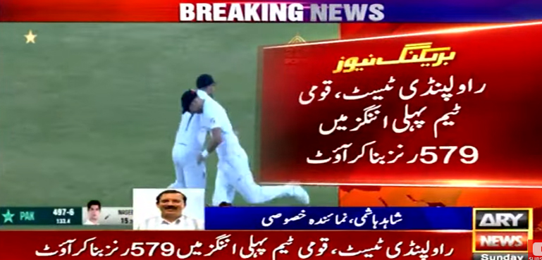 راولپنڈی ٹیسٹ کے چوتھے روز پاکستان کی پوری ٹیم پہلی اننگ میں 579 رنز بنا کر آؤٹ ہوگئی انگلینڈ کو پہلی اننگ میں 78 رنز کی برتری ملی ہے۔