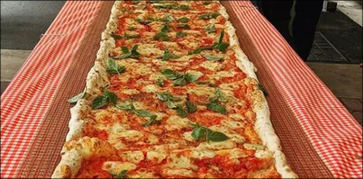 میڈیا رپورٹس میں بتایا گیا ہے کہ انہوں نے 338 فٹ طویل پیزا ایک کنوینئر اوون کی مدد سے تیار کیا ہے، جس میں 90 کلوگرام آٹا لگا ہے جبکہ اس پیزا کو 4 ہزار سلائس میں کاٹ کر مجمع میں ہی تقیسم کردیا گیا تھا۔