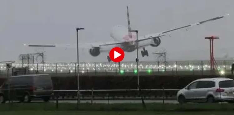 غیرملکی خبررساں ادارے کی رپورٹ کے مطابق لندن کے ہیتھرو ایئرپورٹ پر لاس اینجلس سے لندن پہنچنے والے مسافر طیارے کی تیز ہواؤں اور طوفان کے سبب ہچکولے کھاتے ہوئے لینڈںگ ہوئی۔
