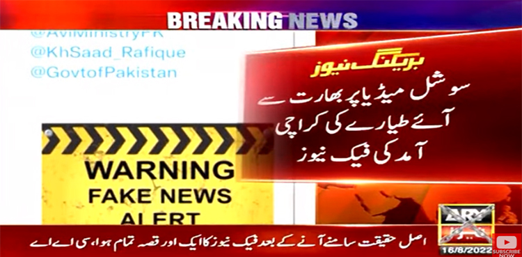 سوشل میڈیا بھارت سے آئے طیارے کی کراچی آمد کی فیک نیوز سے متعلق سول ایوی ایشن نے بھی حقیقت بیان کر دی۔
