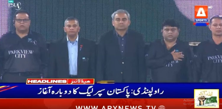 اے آر وائی نیوز کے مطابق پاکستان سپر لیگ 10 کا میلہ آج سے راولپنڈی میں دوبارہ سج گیا ہے، کراچی کنگز اور پشاور زلمی کے میچ سے قبل کھلاڑیوں اور آفیشلز نے پاک افواج سے اظہاریکجہتی کیا، پاکستان کی بہادر مسلح افواج کو زبردست خراج تحسین پیش کیا گیا۔