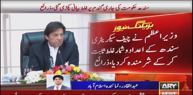 ذرائع وزیراعظم ہاؤس کا کہنا ہے کہ وزیراعظم نےچیف سیکریٹری سندھ کےاعدادوشمارغلط ثابت کرکےشرمندہ کردیا اور سندھ حکومت کی جاری گندم پر غلط بیانی پکڑی گئی۔