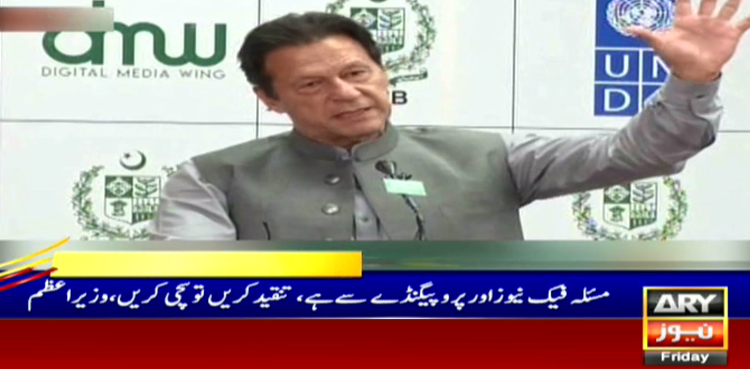 وزیر اعظم نے پیش کش کی کہ ’حکومت پر سچی تنقید کریں، ہمیں کوئی مسئلہ نہیں، جس طرح ہم نے میڈیا کو آزادی دی کوئی ایسی حکومت نہیں آئی، اُس کے باوجود 3سالوں میں ہمارے خلاف 70فیصد جعلی خبریں چلائی گئیں‘۔