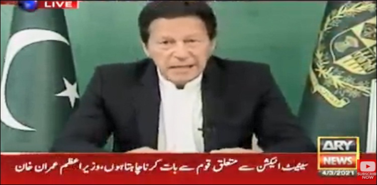وزیراعظم عمران خان نے اپنے خطاب کے آغاز میں کہا کہ ’سینیٹ الیکشن سےمتعلق قوم سے بات کرنا چاہتا ہوں کیونکہ اس سے متعلق قوم کو سمجھانا بہت ضروری ہے، اگر یہ الیکشن سمجھ آگئے تو قومی مسائل بھی سمجھ آجائیں گے‘۔