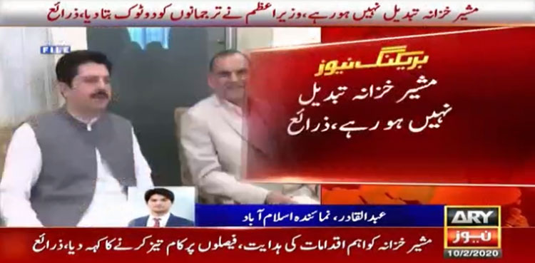 ذرائع کا کہنا ہے کہ وزیراعظم عمران خان نے ترجمانوں کو دو ٹوک پیغام دیا ہے کہ مشیرخزانہ تبدیل نہیں ہو رہے، مشیر خزانہ بہترین کام کر رہے ہیں،کوئی تبدیلی زیر غور نہیں۔
