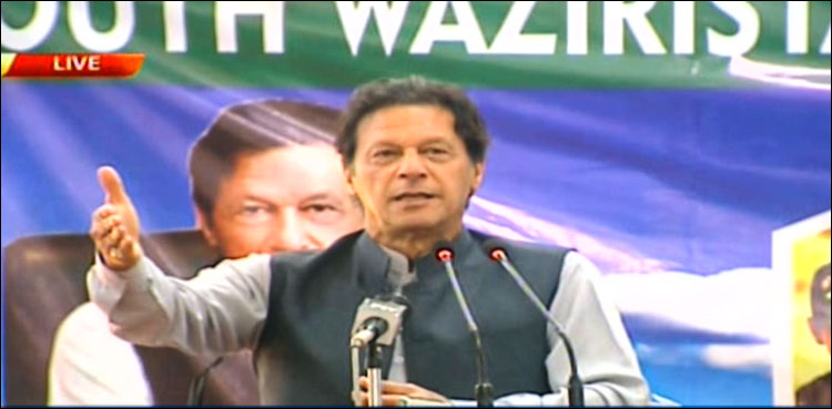 عمران خان کا کہنا تھا دس سال میں ملک کا قرصہ تین گنا بڑھادیاگیا،ٹیکس کلیکشن میں سےدوہزار ارب قرضوں پرسوداور قسط دینےمیں نکل جاتےہیں، قبائلی  علاقوں میں فوج بھیجنےکامخالف تھا،یہاں غربت زیادہ ہے، لوگ روزگار کیلئےباہرجاتےہیں،یہاں سےزیادہ محسود توکراچی میں ہوںگے۔