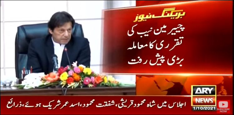 ذرائع کے مطابق اجلاس میں شریک وفاقی وزرا فواد چوہدری ،اسد عمر، شاہ محمود قریشی، بیرسٹر فروغ نسیم کی تجاویز پر وزیراعظم نے نیب چیئرمین کی تقرری کے معاملے پر اپوزیشن لیڈر شہباز شریف سے مشاورت پر نیم رضامندی ظاہر کی۔