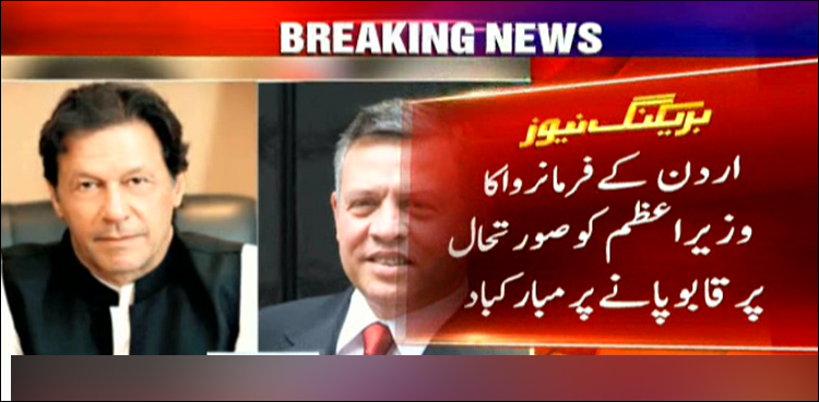 عمران خان نے اردن کےفرمان روا کو کشیدگی میں کمی کے لئے اقدامات سے آگاہ کیا، اردن کے فرمان روا نے وزیراعظم کو صورتحال پرقابو پانے پرمبارک باد دی.