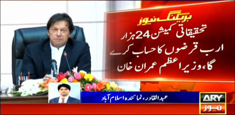 اس موقع پر وزیر اعظم نے کہا کہ تحقیقاتی کمیشن کامقصد24 ہزار ارب قرضوں کا حساب ہے، تحقیقاتی کمیشن کا قیام جلد عمل میں لایا جا رہا ہے، تحقیقاتی کمیشن اقامہ رکھنے والوں کا حساب بھی کرے گا.