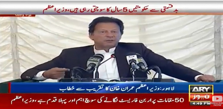 ماضی کی حکومتوں کو تنقید کا نشانہ بناتے ہوئے وزیراعظم کا کہنا تھا کہ بدقسمتی سے حکومتیں پانچ سال کا سوچتی رہی، انہیں کہتا ہوں کہ ملک کے مستقبل پانچ سال کی پلاننگ سے نہیں بنتے، ہم نے جنگلات ختم کئے مگر کسی نے اثرات کے بارے میں نہیں سوچا،بغیرسوچے سیمنٹ کےجنگل بنانےسےلوگوں پر منفی اثرات آتےہیں۔
