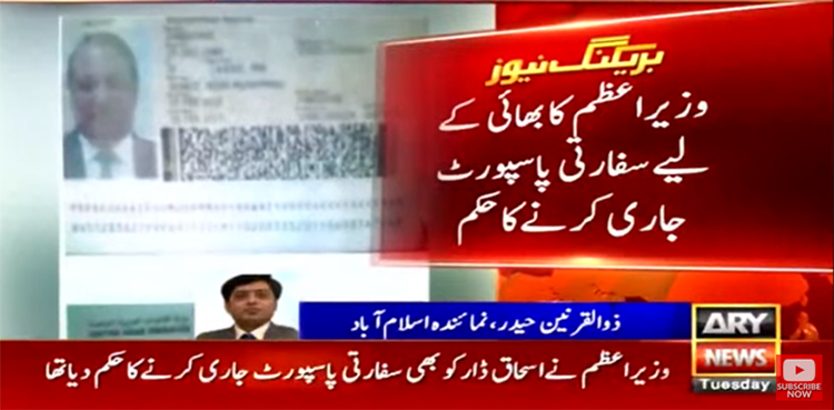 وزیراعظم نے اسحاق ڈار کو بھی سفارتی پاسپورٹ جاری کرنےکا حکم دیا تھا تاہم سفارتی عملے نے واضح کیا کہ اسحاق ڈار کو سفارتی پاسپورٹ جاری نہیں کیا جا سکتا۔