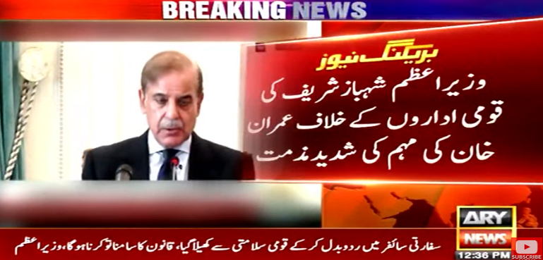 وزیراعظم شہباز شریف کی قومی اداروں کے خلاف عمران خان کی مہم کی شدید مذمت کرتے ہوئے کہا ہے کہ پاکستان کے قومی مفادات سے کھیلنے والوں کو قانون کے آگے جواب دینا پڑے گا۔