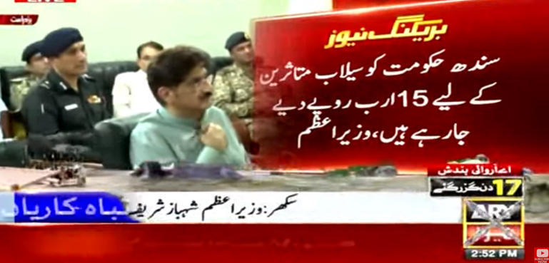 شہباز شریف کا کہنا تھا کہ ہم سب نے مل کر حکومت بنائی ہے، سب مل کر مقابلہ کرینگے، سندھ کے مختلف علاقوں کا فضائی دورہ کروں گا، سندھ حکومت کو ہر قسم کی سہولت اور مدد فراہم کریں گے، این ڈی ایم اے بھی سندھ حکومت سے تعاون کرے گا۔ ریسکیو اور ریلیف کا کام جاری ہے، افواج پاکستان بھی متاثرین کی مدد کیلئے میدان میں ہے، نارتھ میں ڈیم بنانے سے ہمیں فائدہ ہوگا، سیلابی صورتحال سے جان چھوٹے گی۔