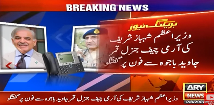 تفصیلات کے مطابق وزیراعظم شہباز شریف نےآرمی چیف جنرل قمرجاوید باجوہ سےفون پرگفتگو کی، اور آرمی ایوی ایشن کےلاپتہ ہیلی کاپٹر سےمتعلق معلومات حاصل کیں، آرمی چیف نے گزشتہ شب سے جاری تلاش کی کارروائیوں سےمتعلق وزیراعظم کو آگاہ کیا۔