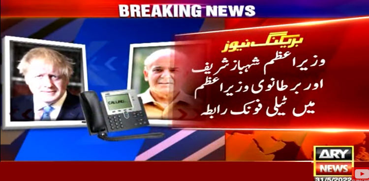 وزیراعظم شہباز شریف اور بر طانوی وزیراعظم بورس جانسن کے درمیان ٹیلی فونک رابطہ ہوا، جس میں دونوں وزرائے اعظم نے یوکرین صورتحال، باہمی دلچسپی کے امور پر تبادلہ خیال کیا گیا۔